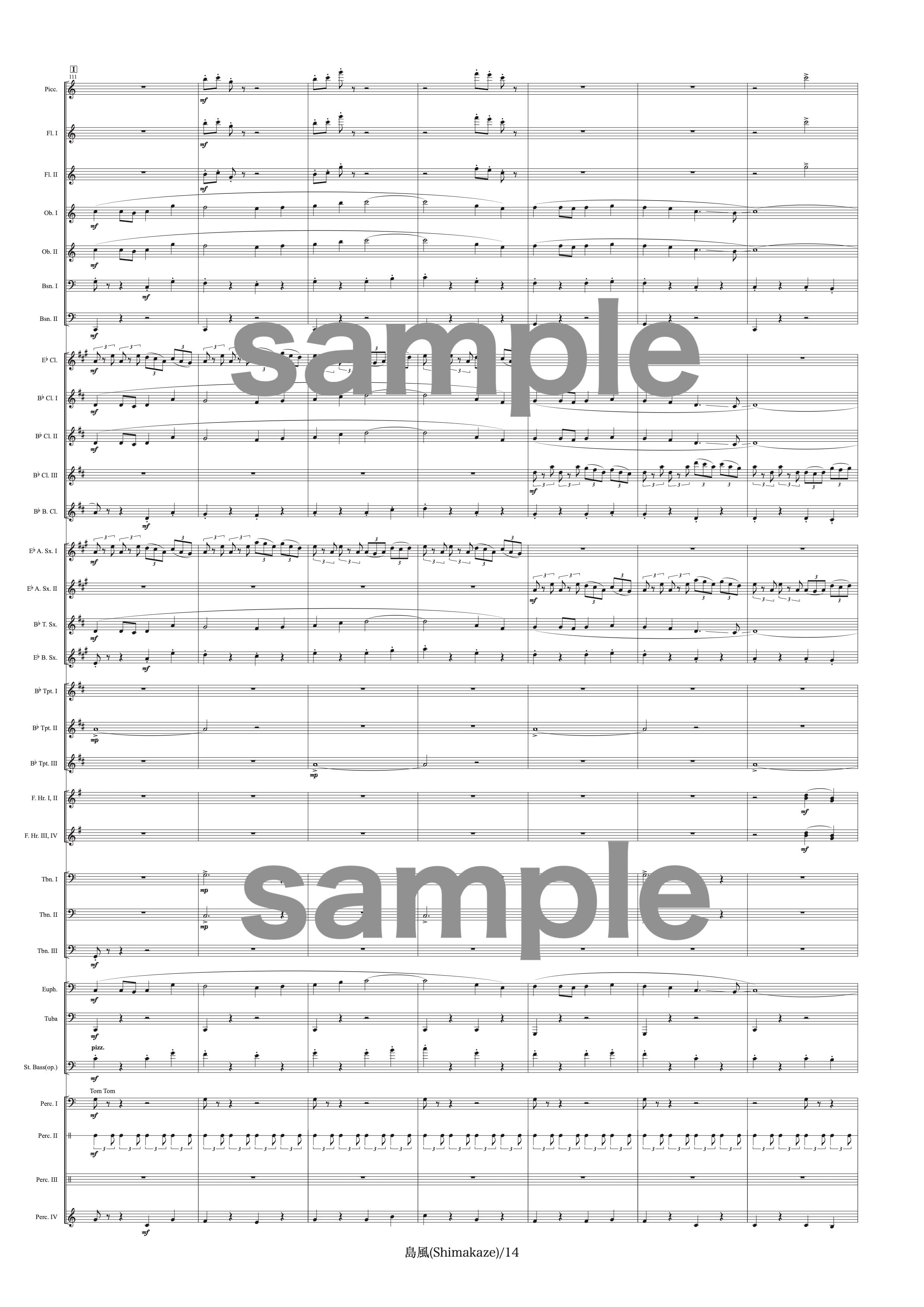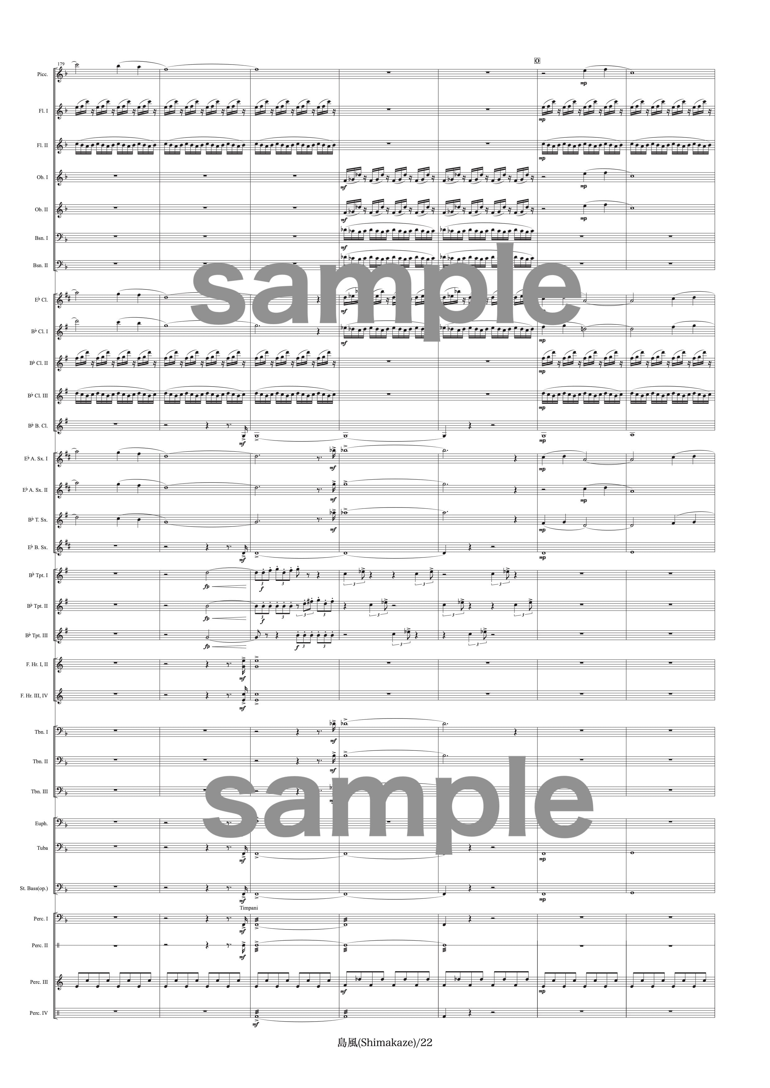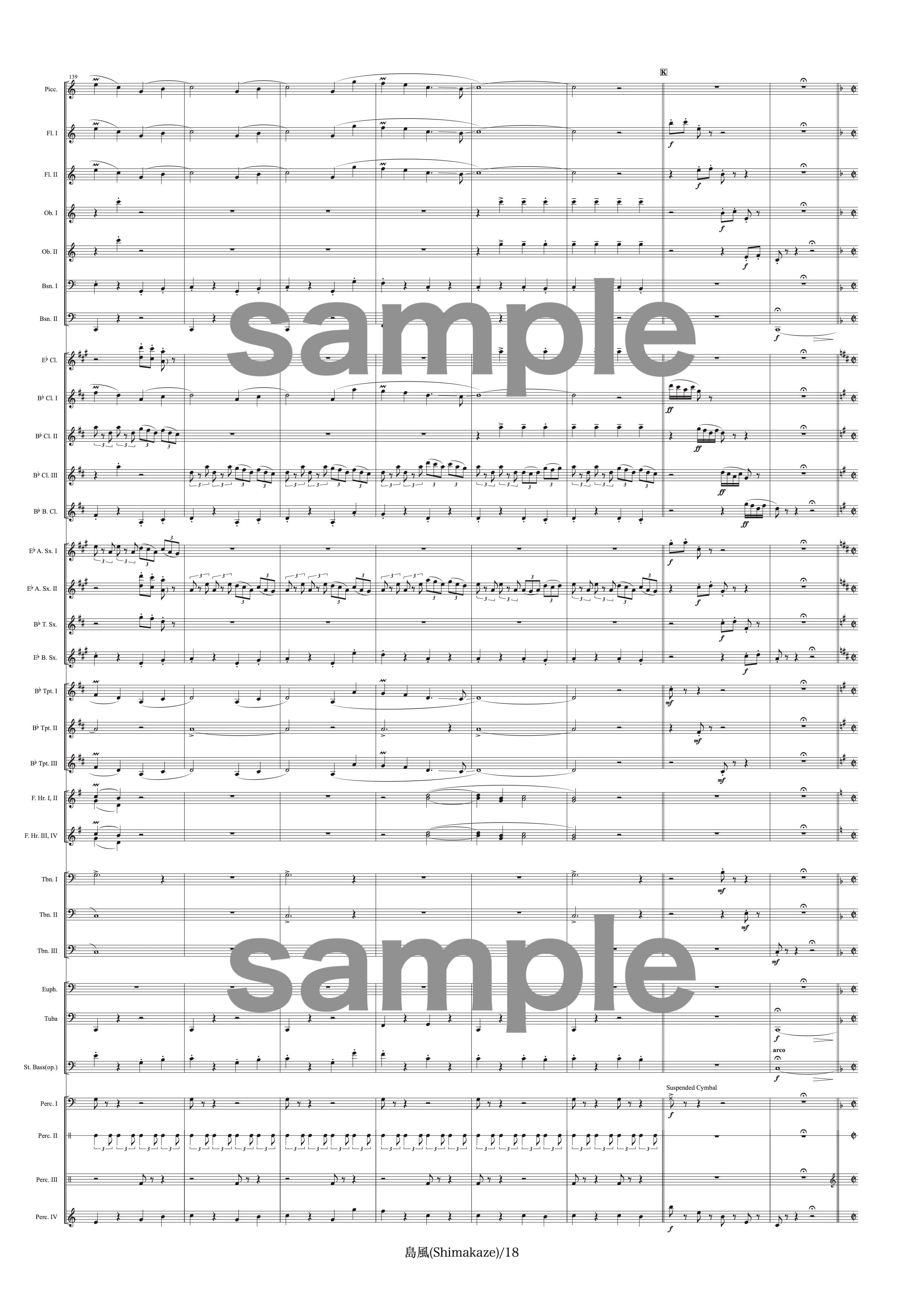 吹奏楽中〜大編成用の作品です。演奏時間は約8分、難易度は中程度です。
