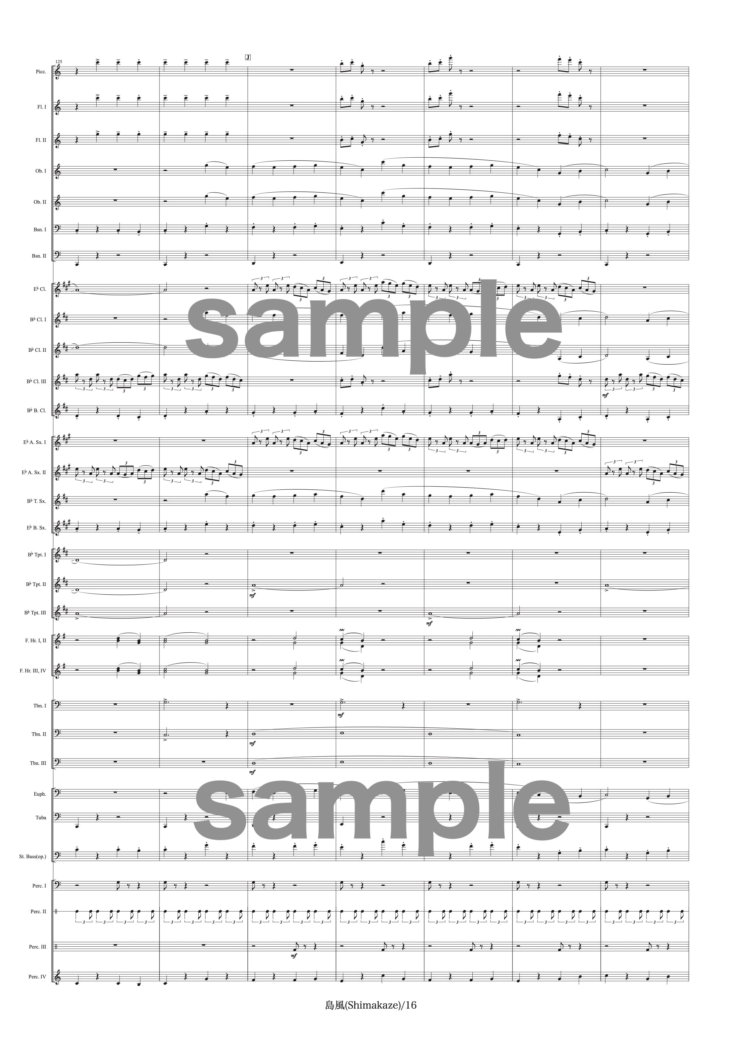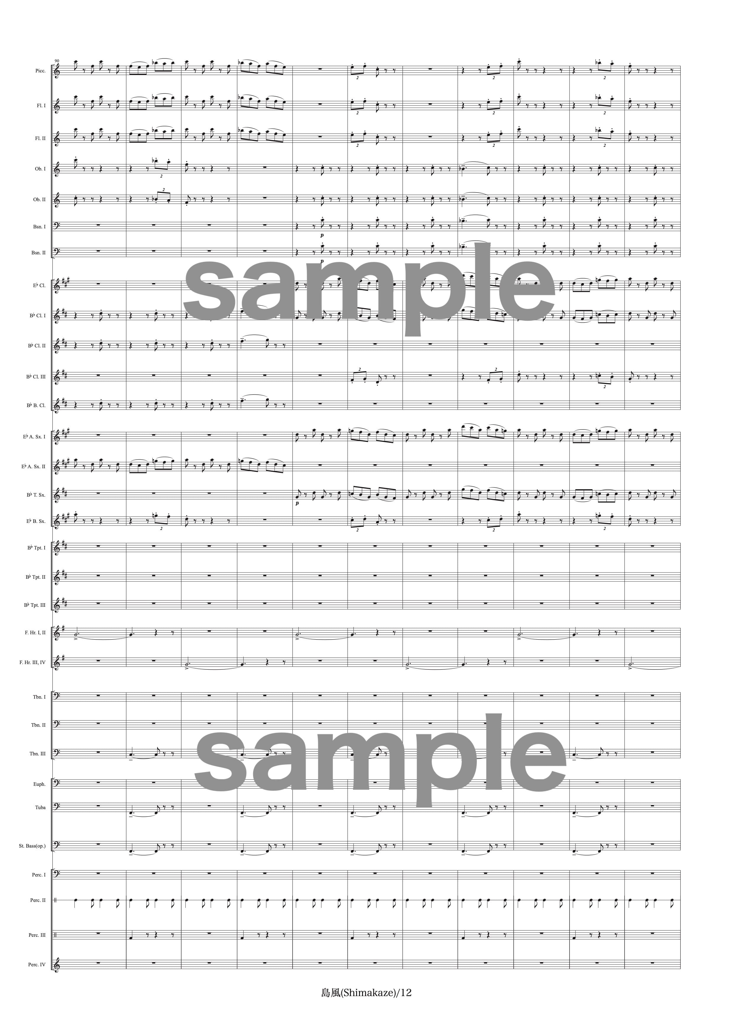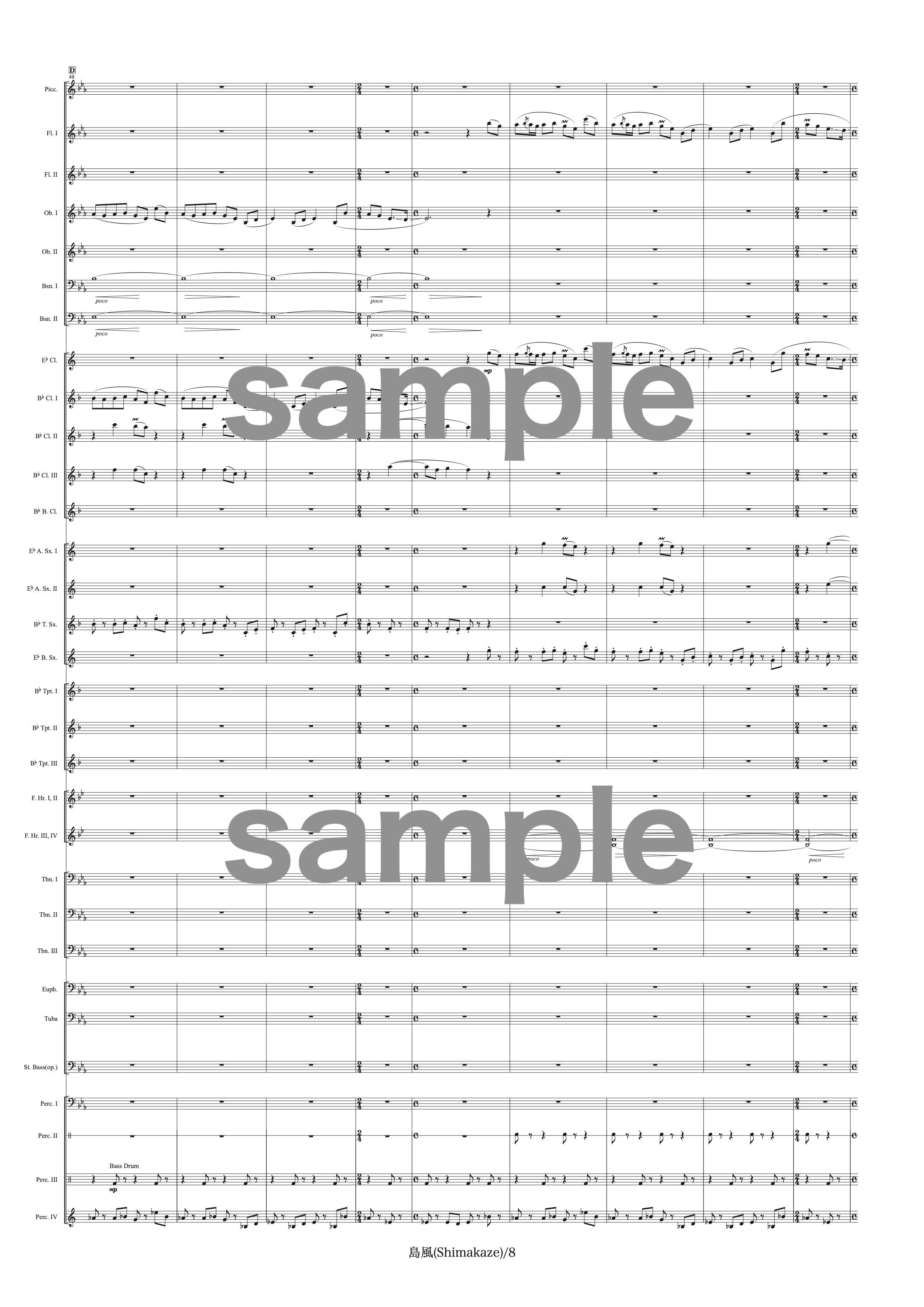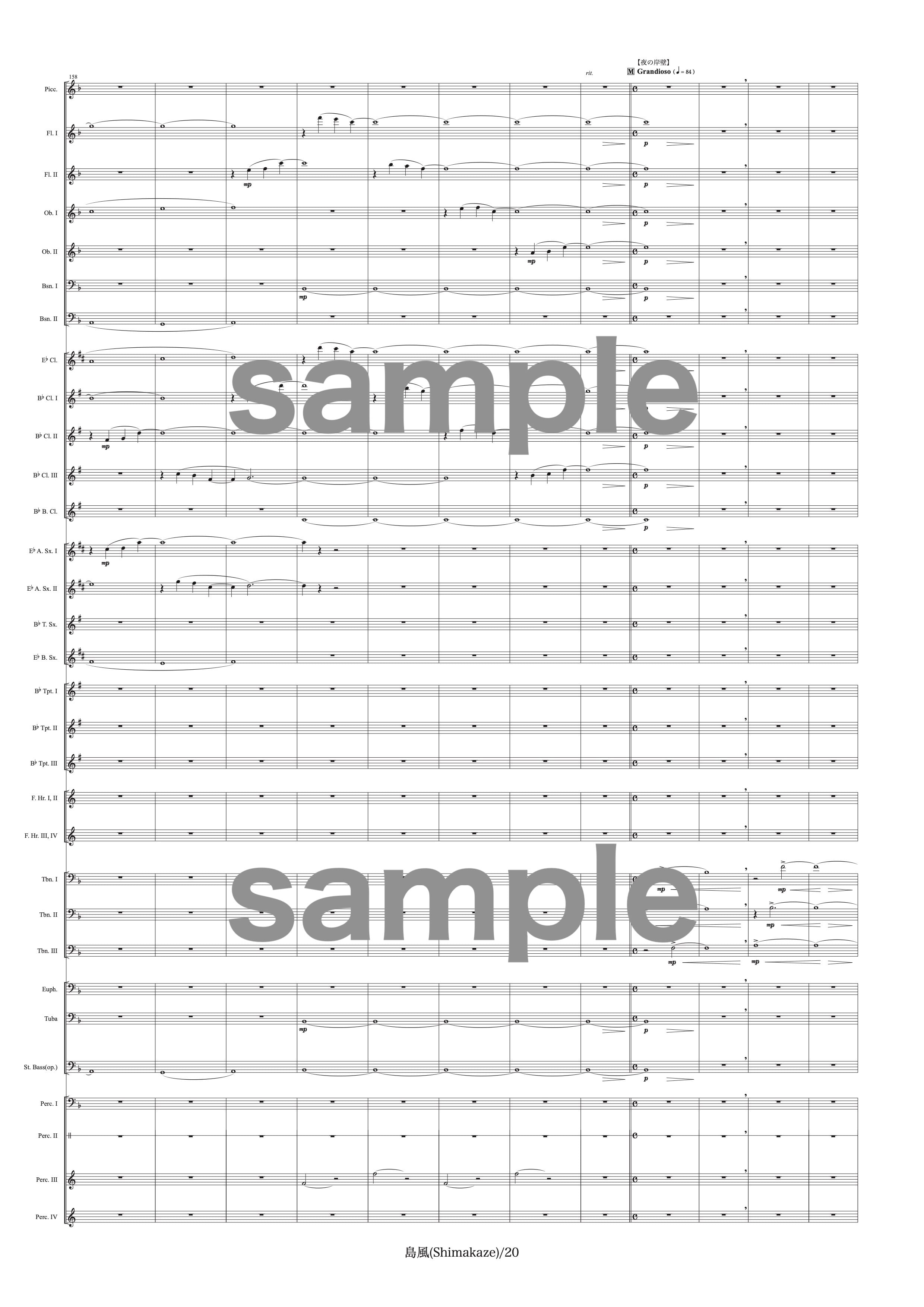 吹奏楽中〜大編成用の作品です。演奏時間は約8分、難易度は中程度です。