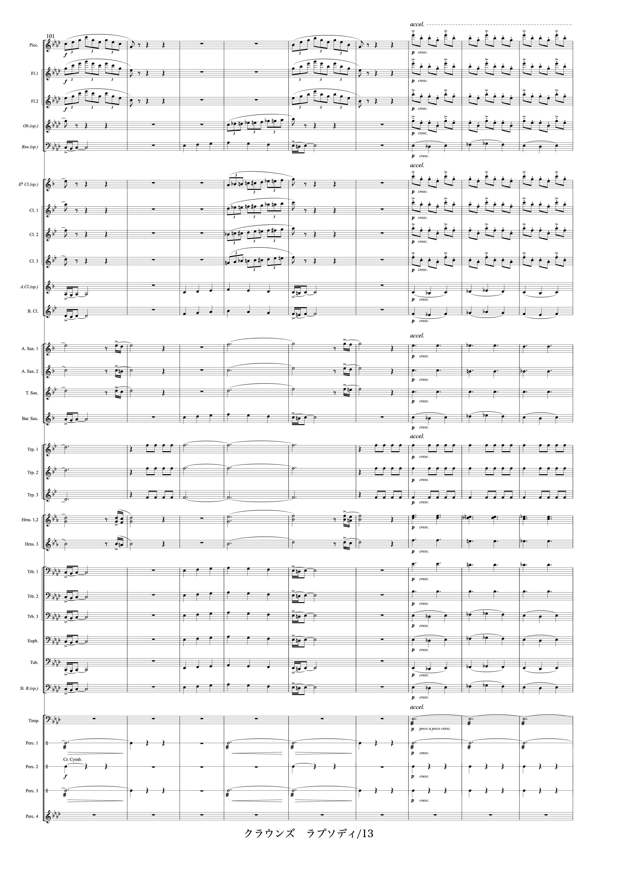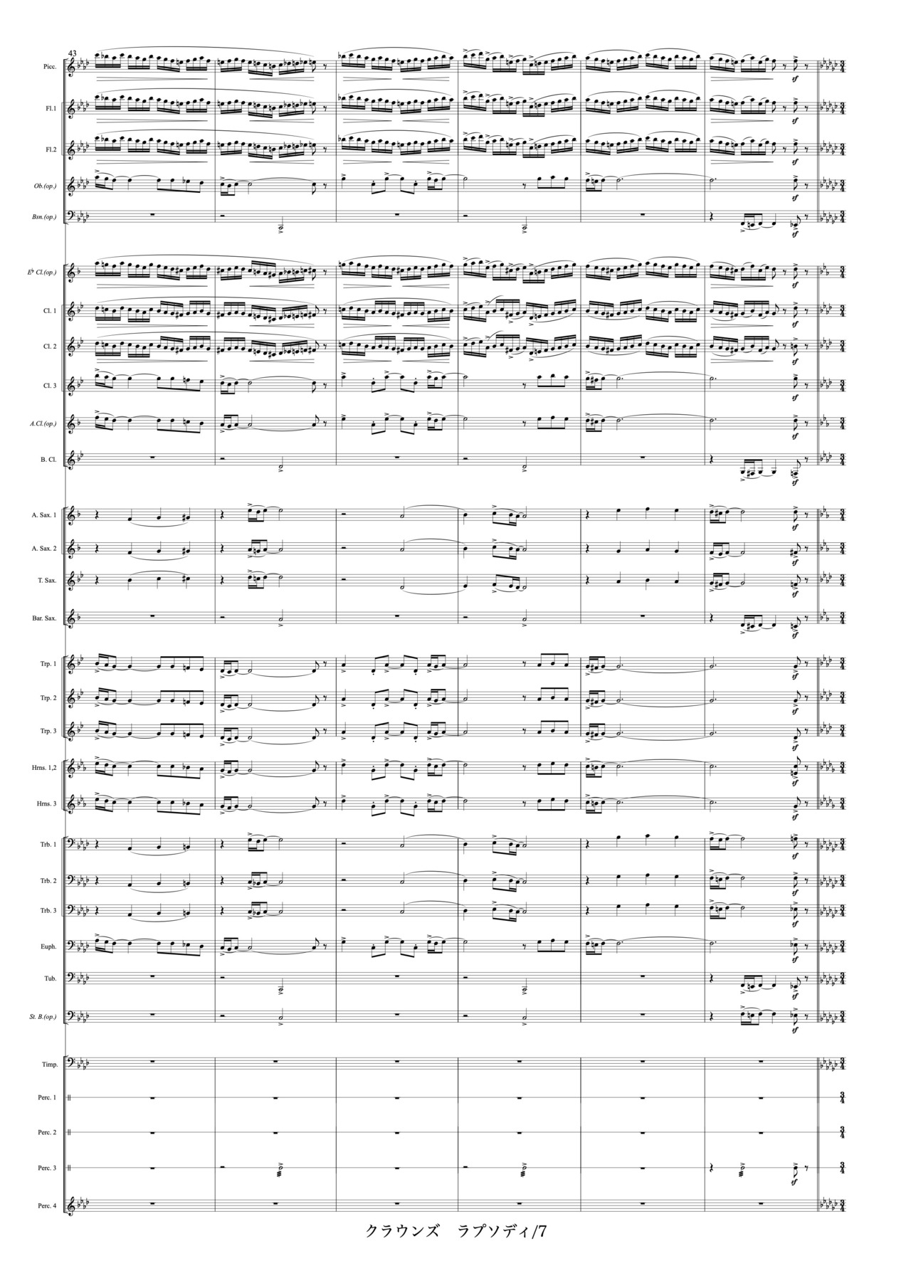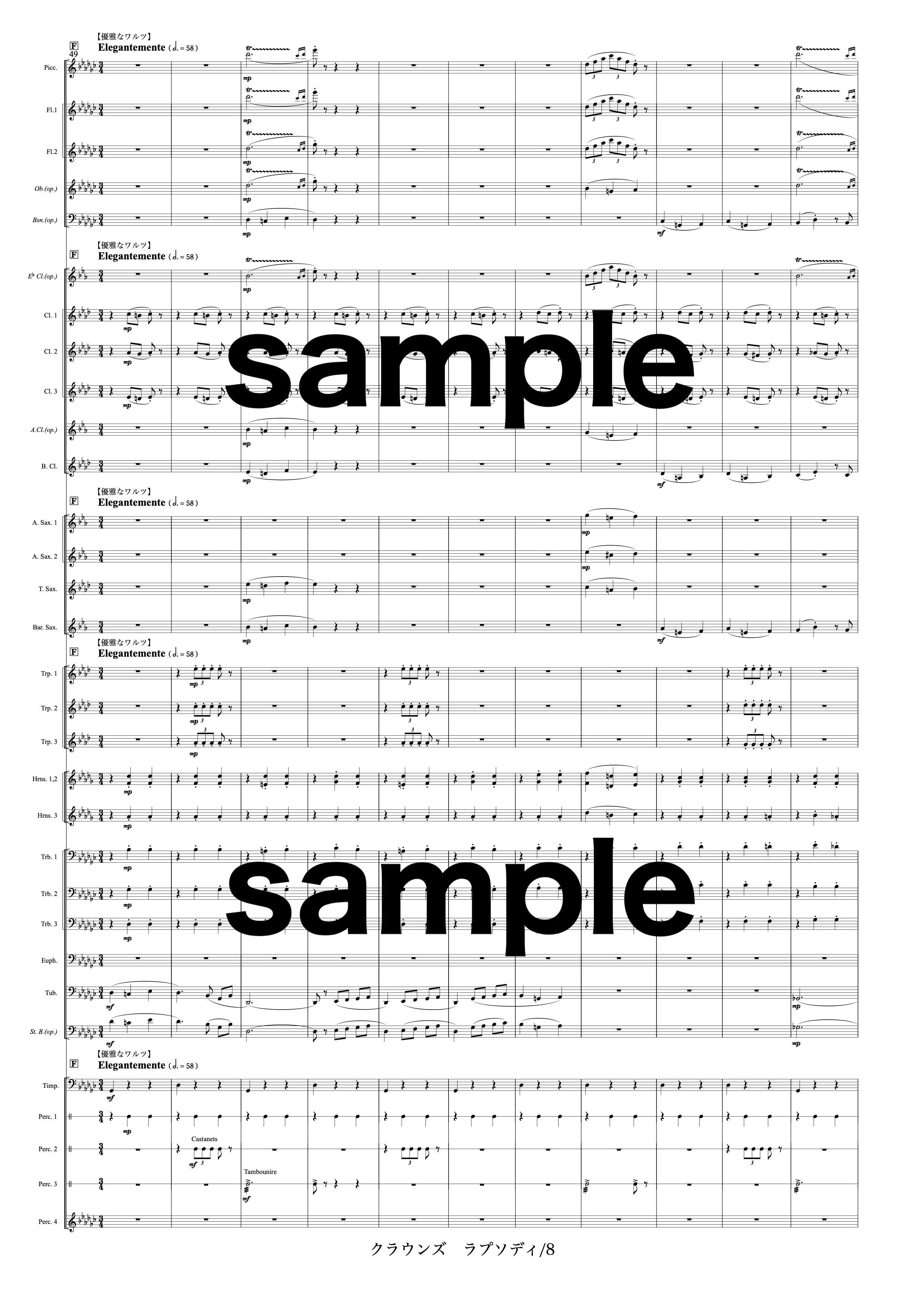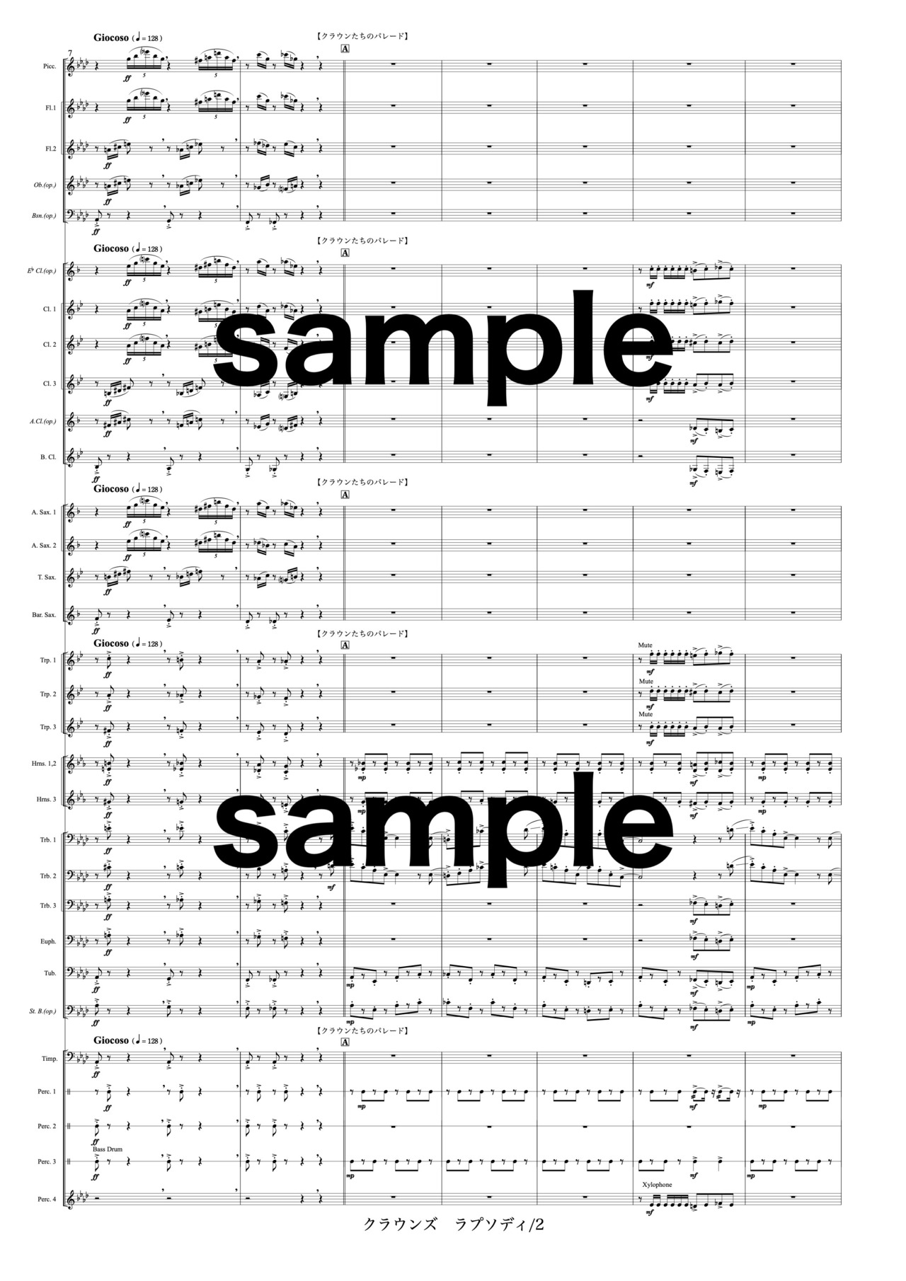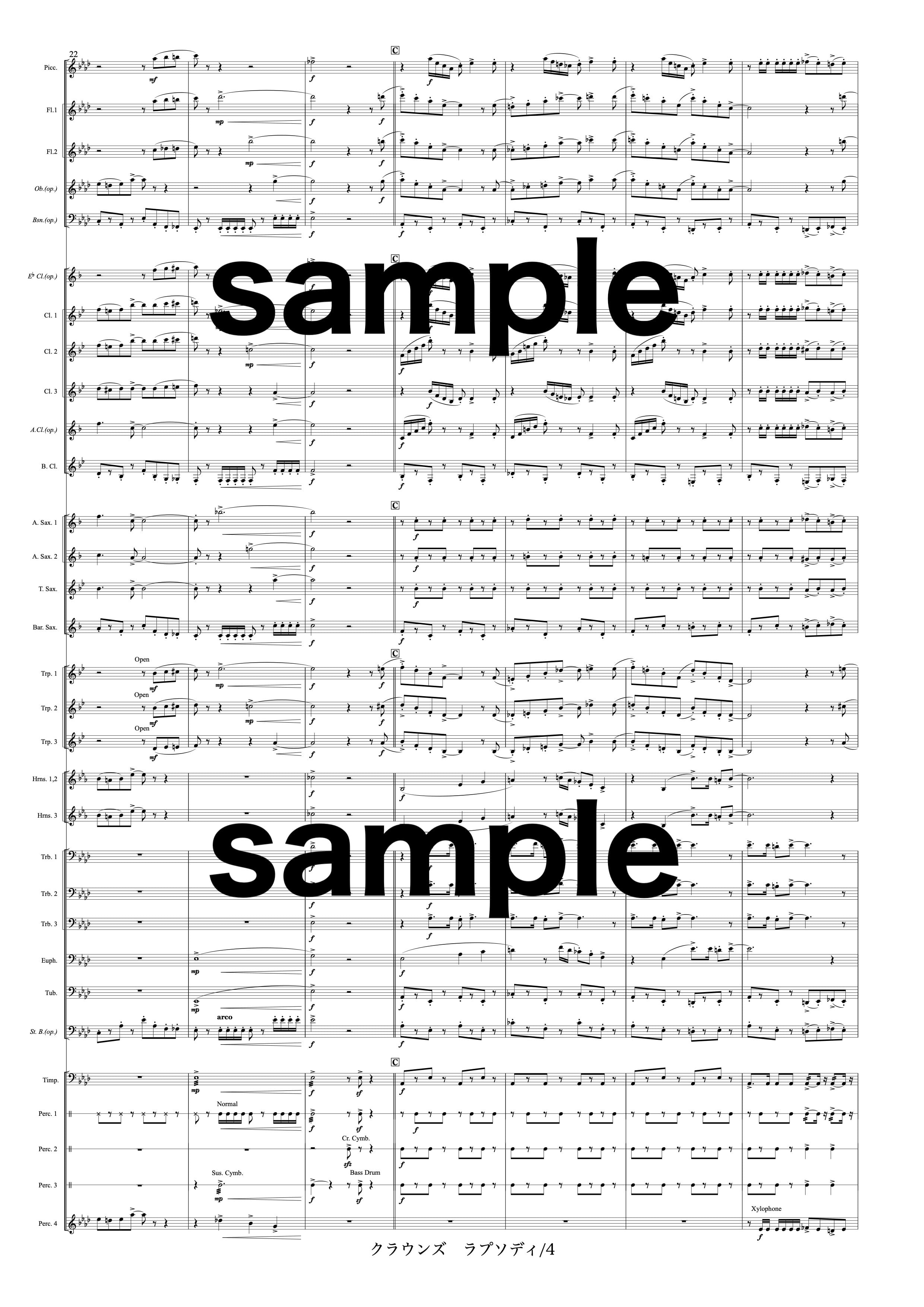 吹奏楽小〜中編成用の作品です。演奏時間は約4分、難易度は中程度です。
